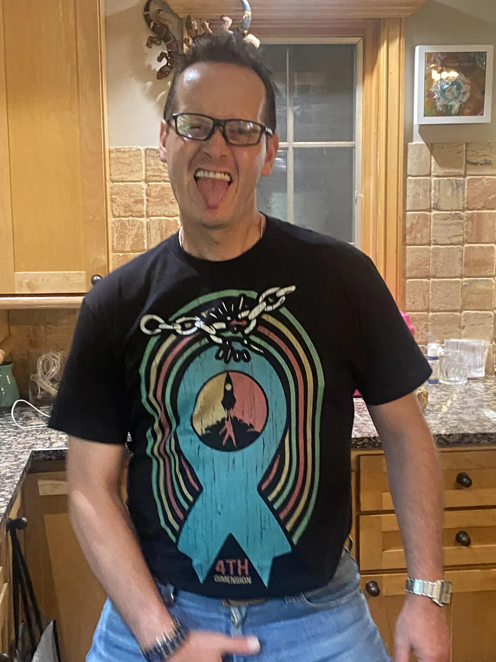 God broke my chains and I figure why not let others know it’s possible like the shirt represents to live in the 4th dimension, One day at a time.